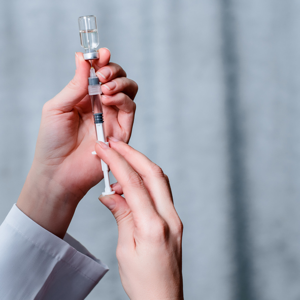 얇고 가는 바늘을 이용하여 약물을 투여합니다.